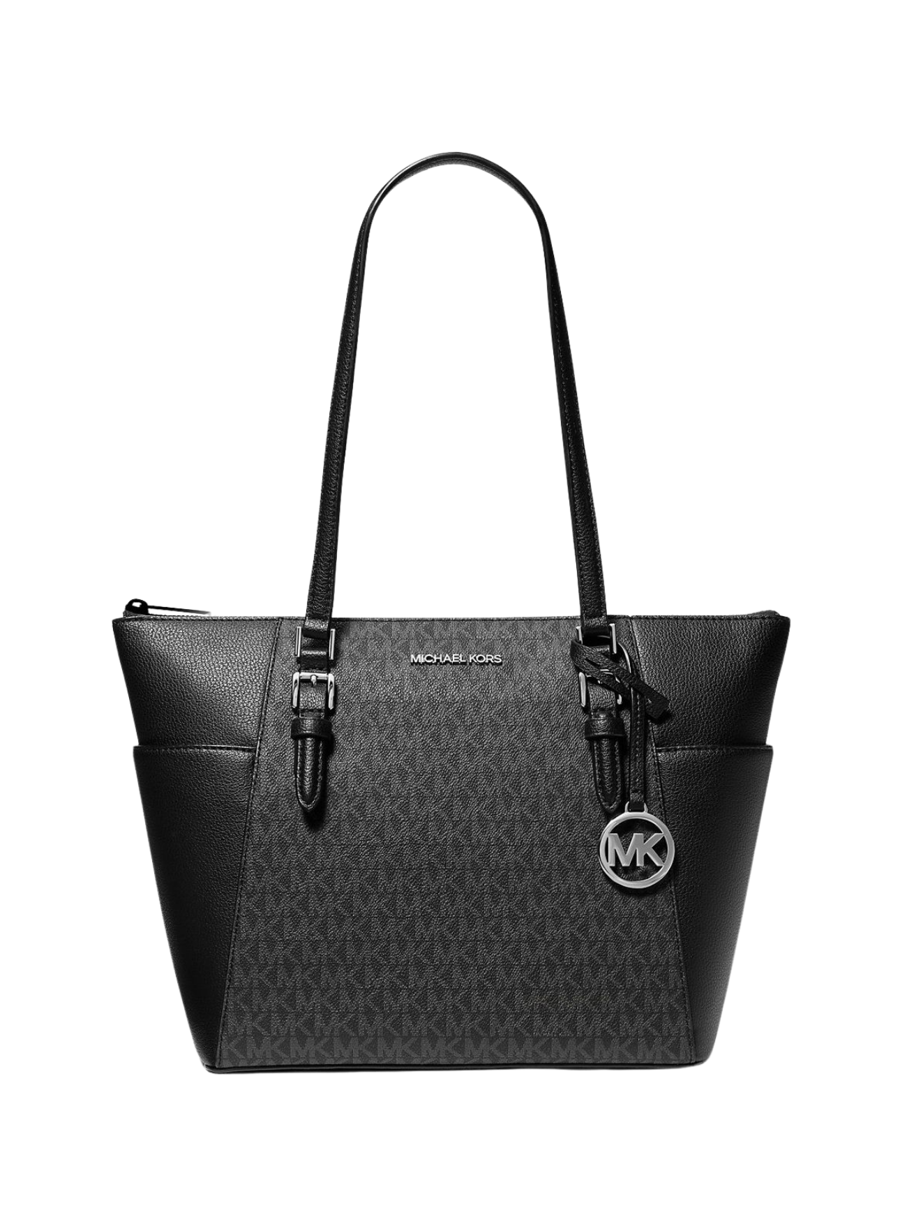 MK Charlotte Large Logo and Leather Top-Zip Tote Bag - Black