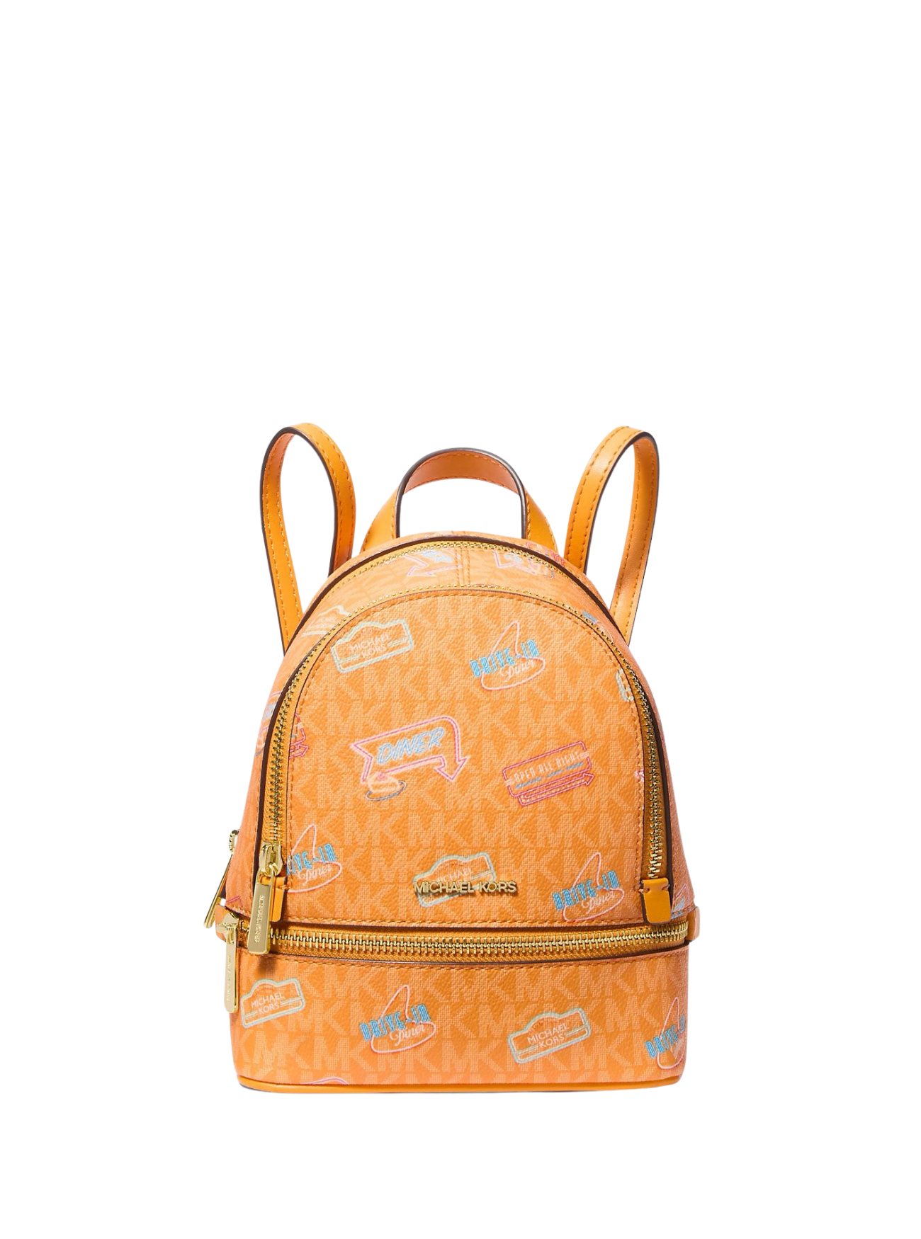 MK Rhea Extra-Small Printed Signature Logo Backpack - POP ORANGE