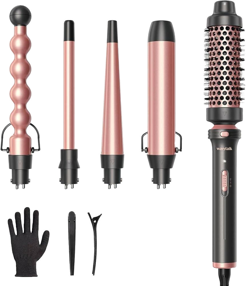 5 in 1 Curling Iron Set with Curling Brush and 4 Interchangeable Ceramic Curling Wand
