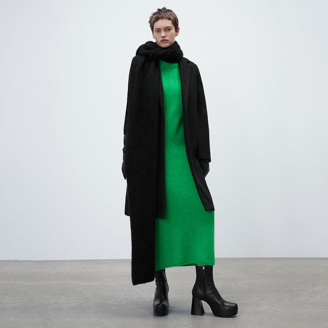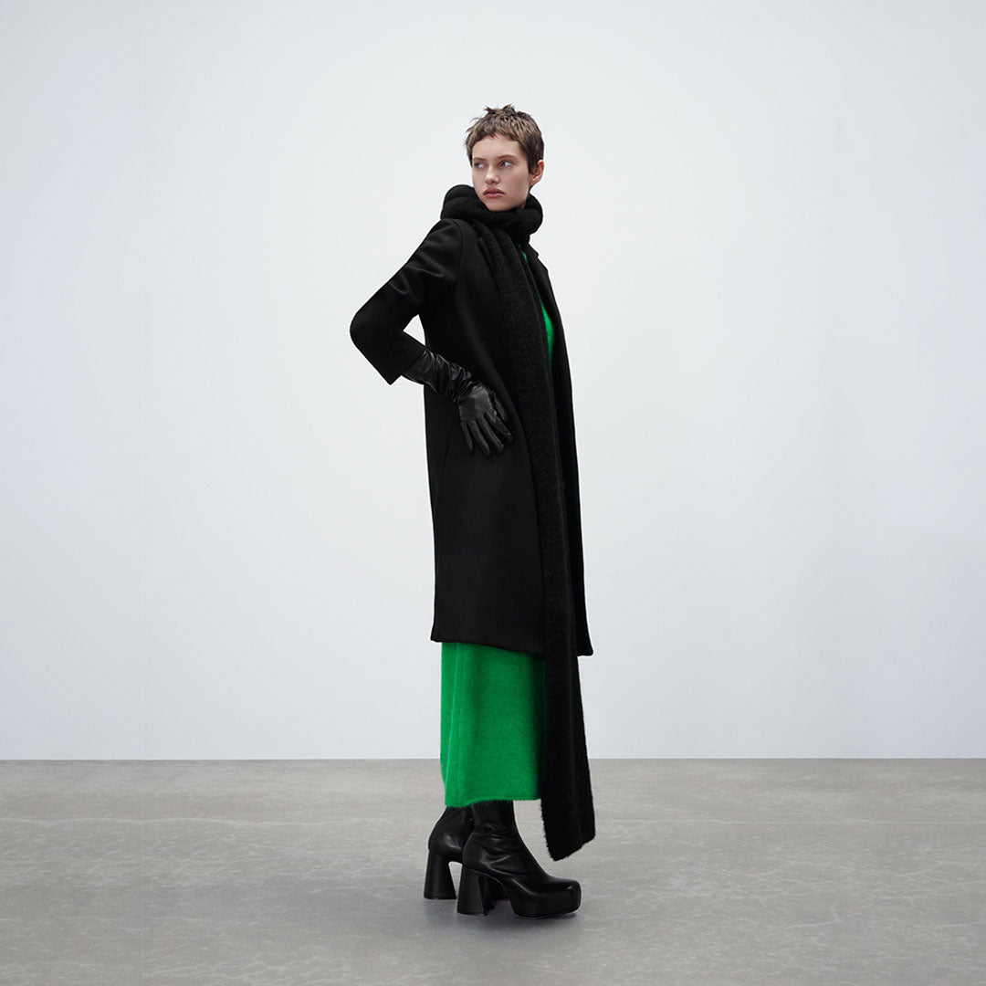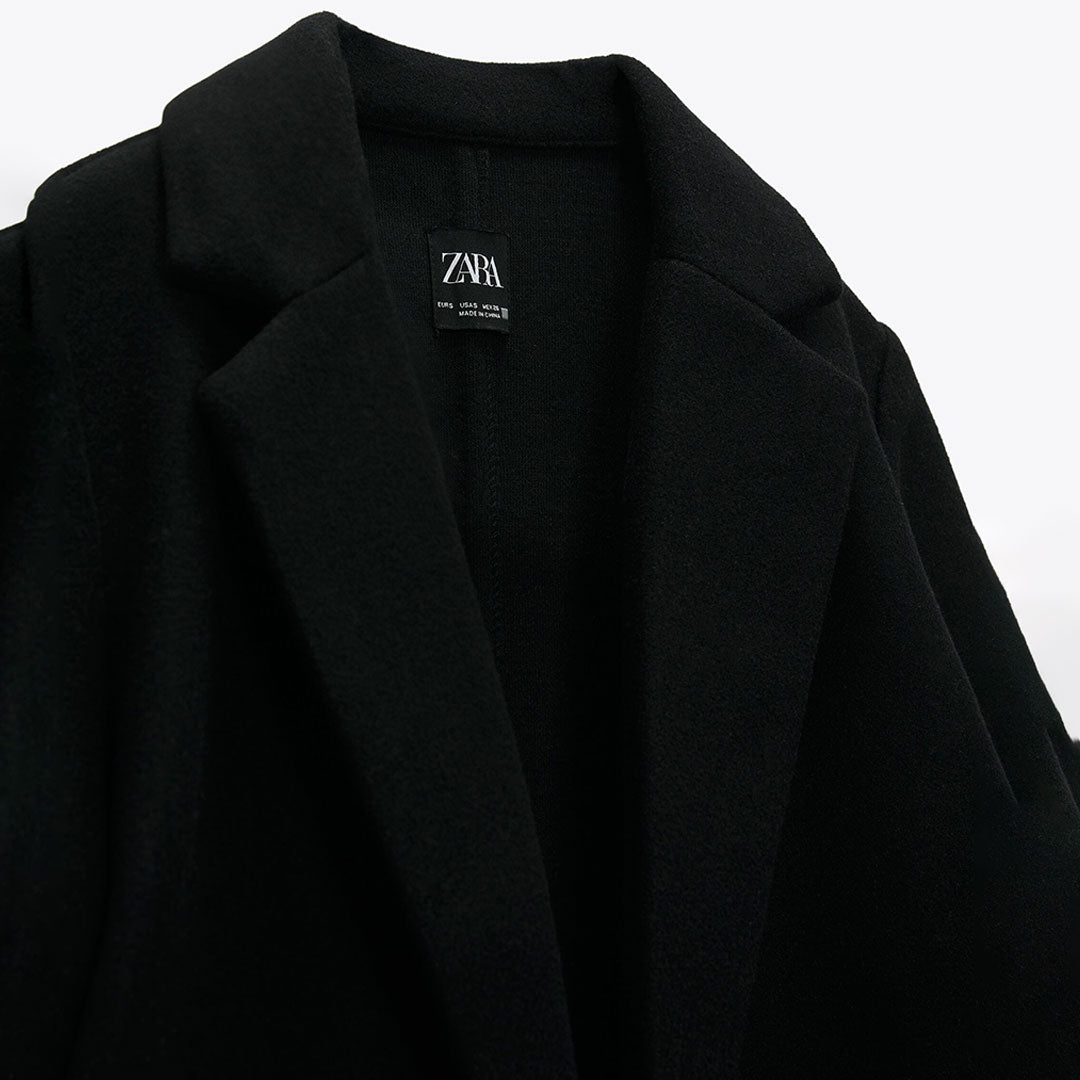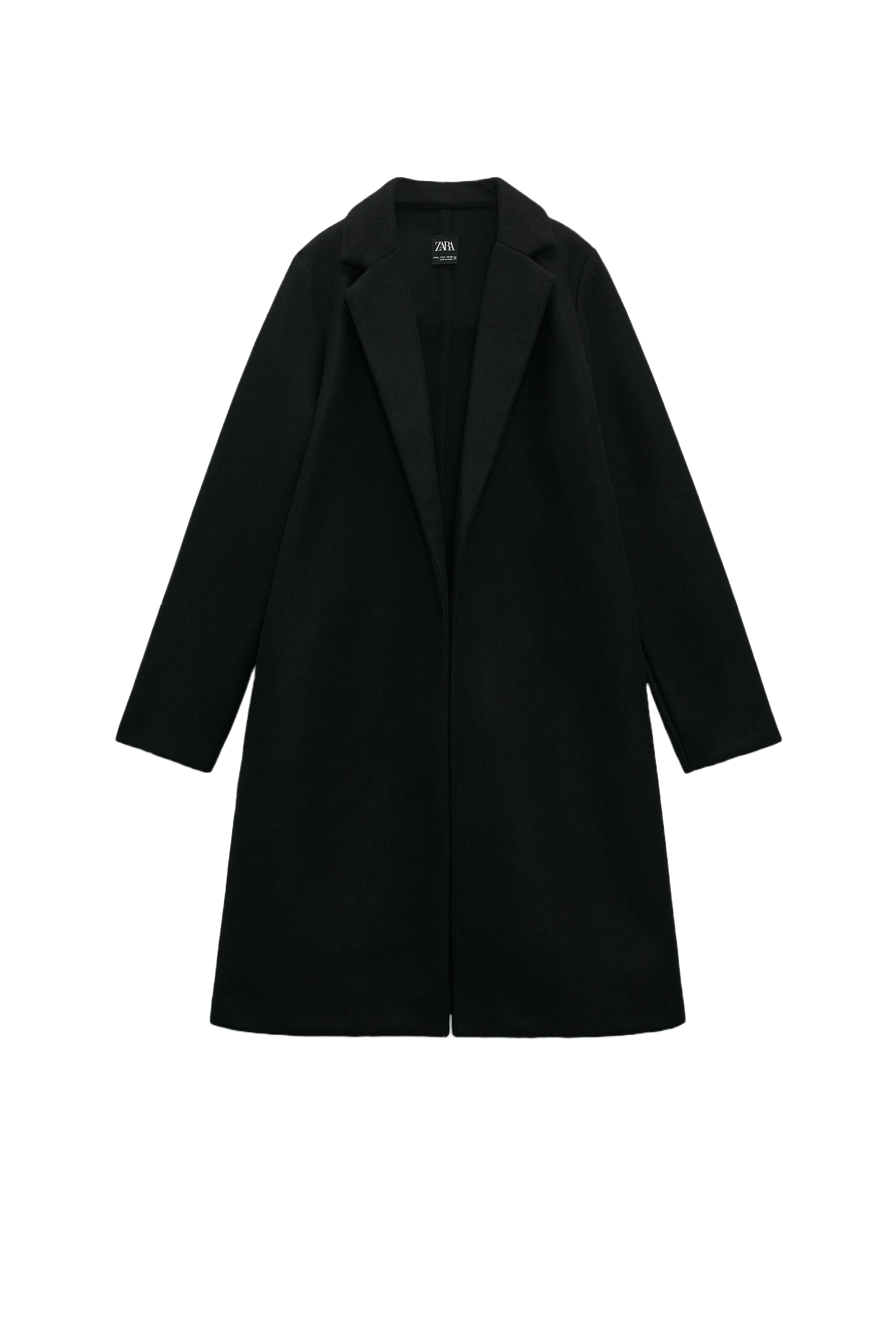 Open coat featuring a lapel collar, long sleeves, and in-seam side pockets.