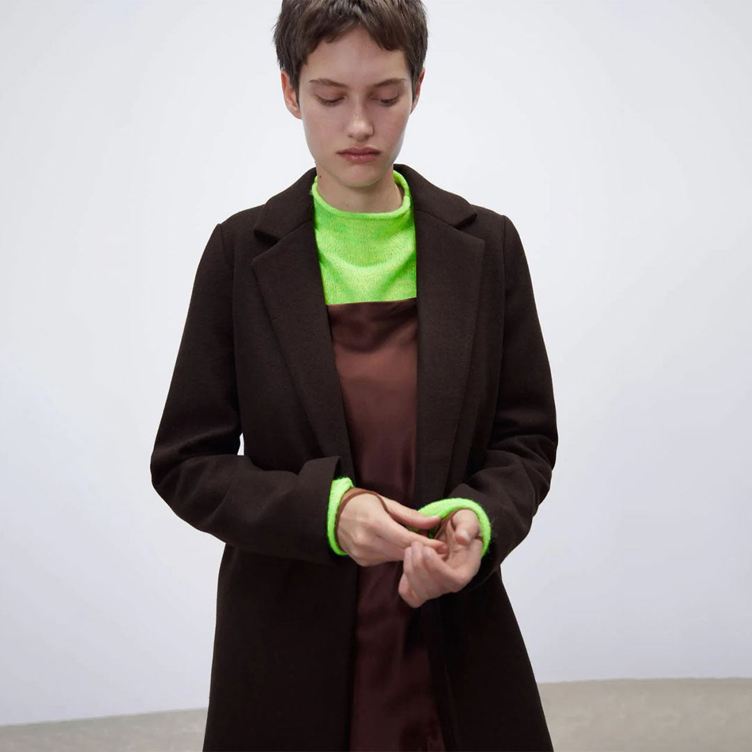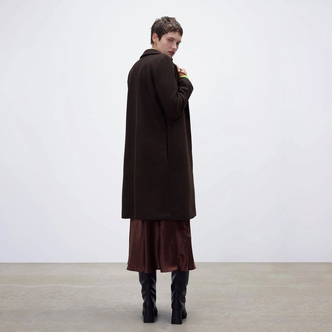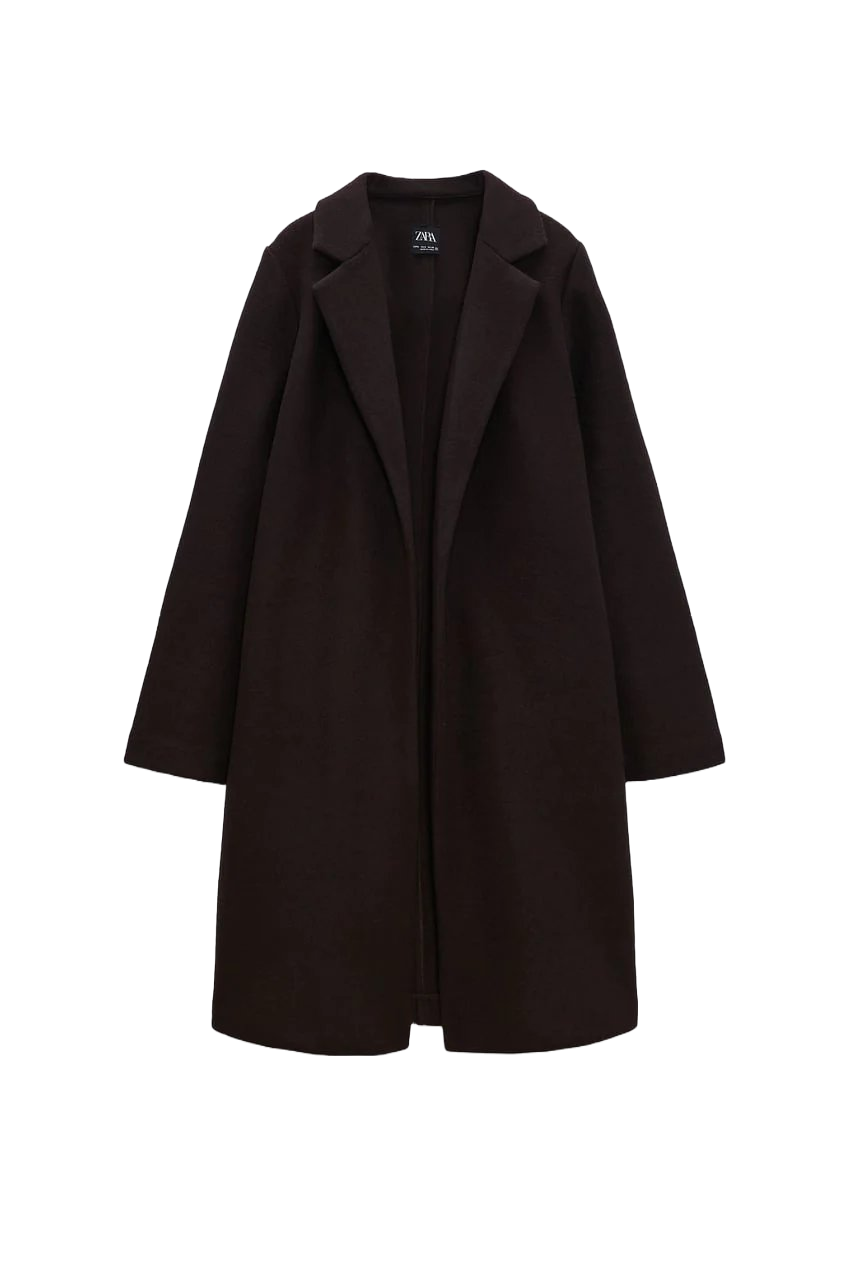 Open coat featuring a lapel collar, long sleeves, and in-seam side pockets.