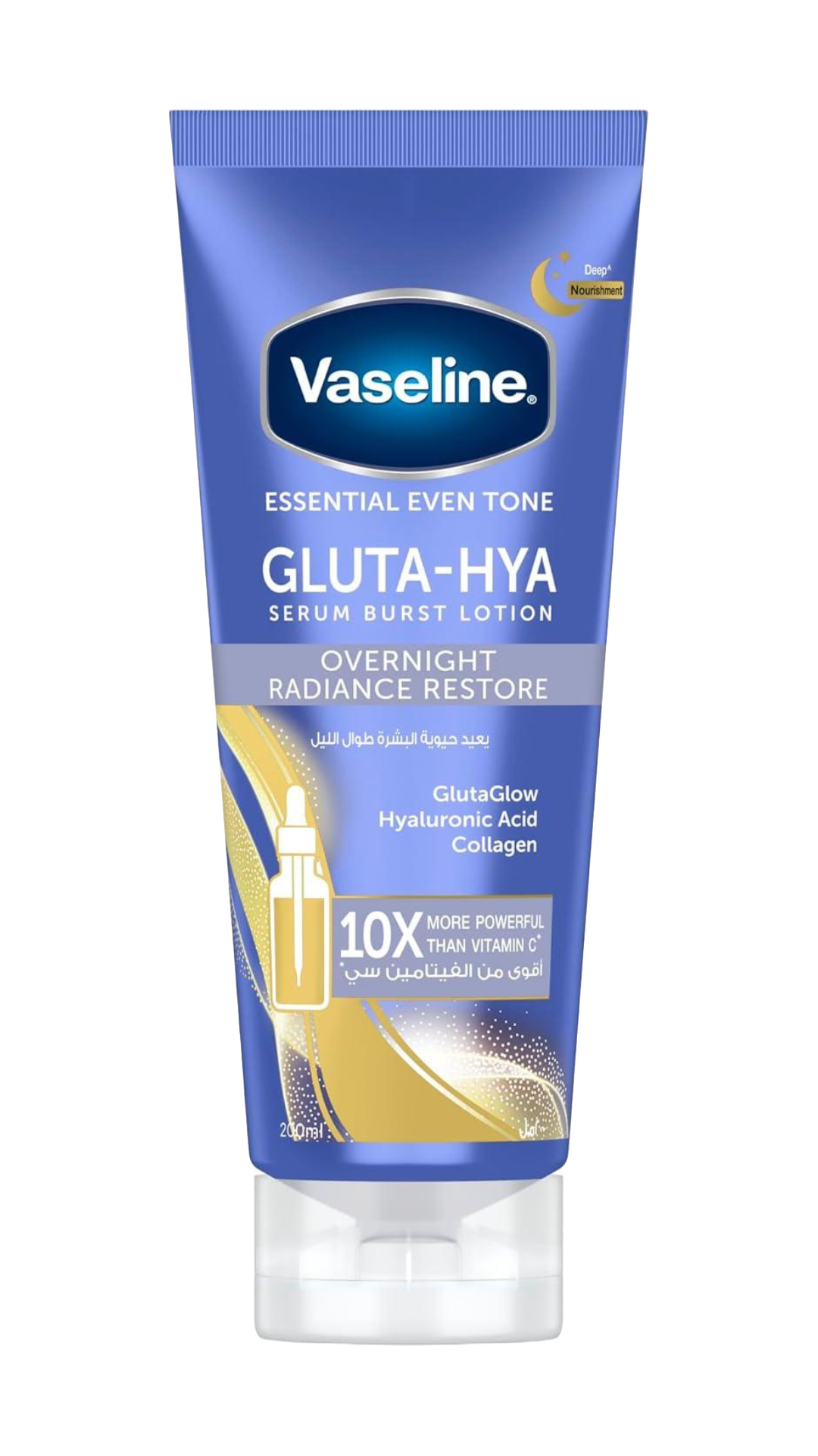Vaseline Gluta-Hya is an advanced overnight serum-in-lotion that works while you sleep for visibly radiant skin.